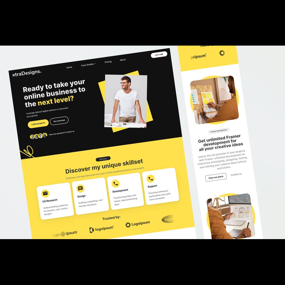 Features: Optional sizing variants (XS, S, M, L)Fully responsiveUses Cases (powered by CMS)PricingNewsletter/CTA (FREE - powered by Mailchimp) Google Lighthouse Performance xtraDesigns Template excellent Google Lighthouse performance ensures that your app's website loads quickly and efficiently, providing an optimal user experience. Preview: https://xtradesigns-template.framer.website/