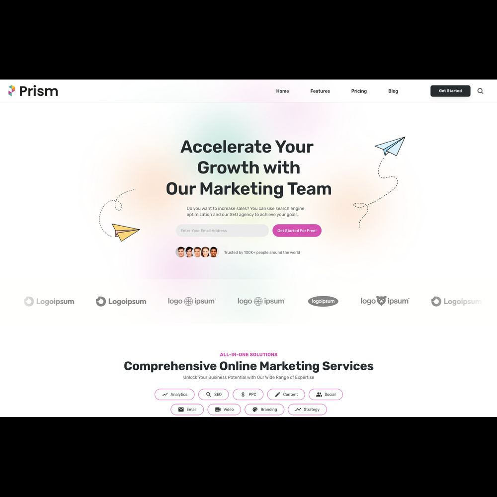 Highlights: Optional size variations (S, M, L, XL)Fully responsiveBlog (powered by CMS)Email signup (powered by Mailchimp and FormSpark)Lifetime free updates Discover the power of innovative digital marketing solutions tailored to elevate your brand, engage your audience, and drive growth. Our team of experienced marketing specialists is dedicated to helping your business navigate the online landscape, harnessing cutting-edge strategies and data-driven insights to unlock your full potential. Google Lighthouse Performance Prism's excellent Google Lighthouse performance ensures that your app's website loads quickly and efficiently, providing an optimal user experience.