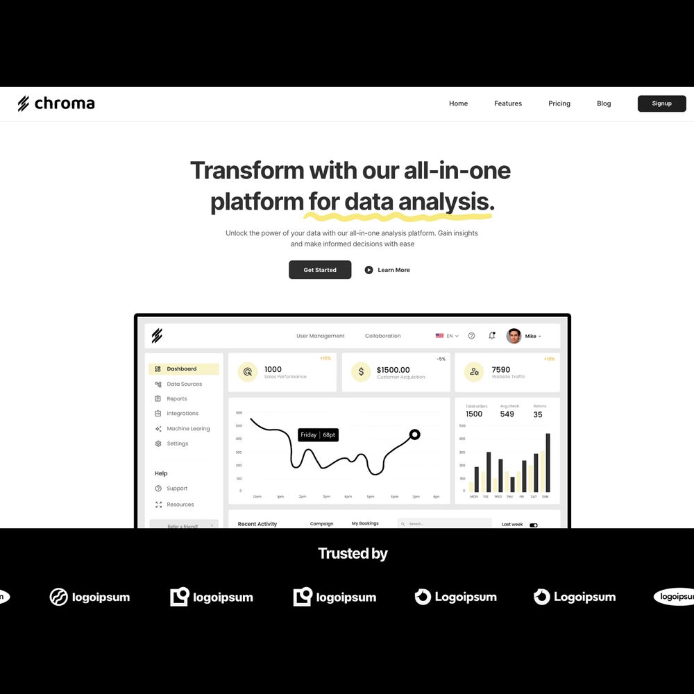 Highlights: Optional size variations (S, M, L)Fully responsiveMultiple ColorsBlog (powered by CMS)Email signup (powered by Mailchimp)Lifetime free updates Introducing Chroma, the multifaceted web template for Framer designed to impress both potential users and investors. This adaptable template boasts a variety of colors, a skillfully designed CMS-powered blog, feature highlights, and pricing options. Plus, engage your audience with a newsletter sign-up and a comprehensive support page featuring a FAQ section. Explore the possibilities with Chroma! Color Customization Chroma offers a variety of colors, allowing you to tailor the template's appearance to match your brand's identity and make your app stand out. Google Lighthouse Performance Chroma's excellent Google Lighthouse performance ensures that your app's website loads quickly and efficiently, providing an optimal user experience.